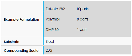 Polythiol ™ QE-340M is a liquid resin constituted by a main polyether chain terminated with thiol (-SH) groups at the end. When combined with Epoxy resin and an amine catalyst the QE-340M can produce a quick cure. It is used as a quick curing epoxy resin adhesive in construction, civil engineering, industrial and general applications.